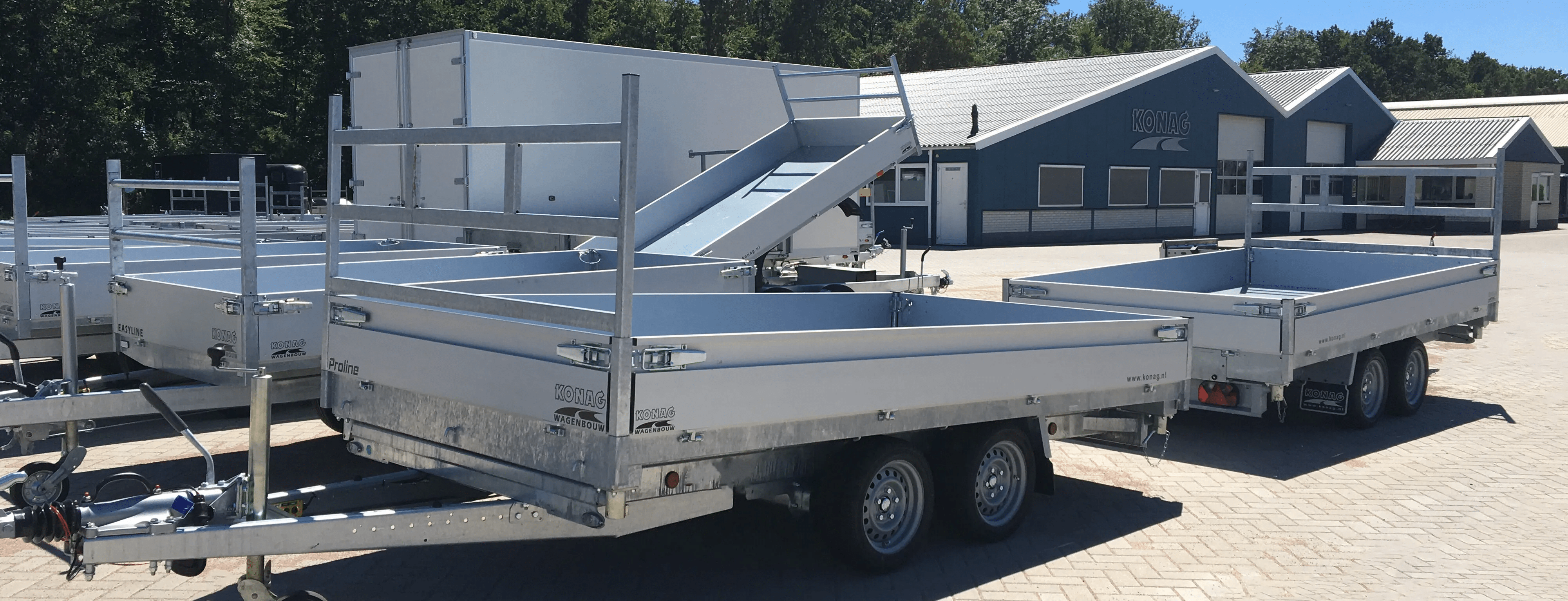 Konag levert een uitgebreid assortiment aanhangwagens. Het is tevens mogelijk om een aanhanger te kopen die custom made gebouwd wordt, Konag produceert namelijk zelf aanhangwagens. Dat stelt ons in staat om specifieke aanpassingen door te voeren en maatwerk te leveren.