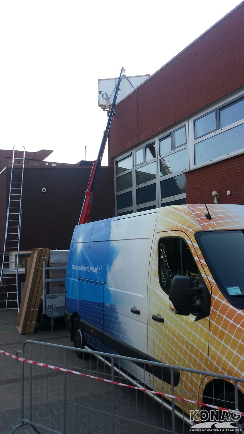 Voor deze kraan is het chassis van de aanhanger gemodificeerd.