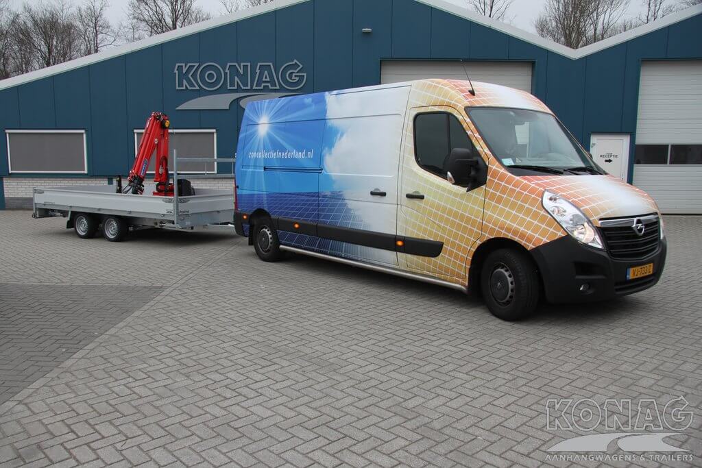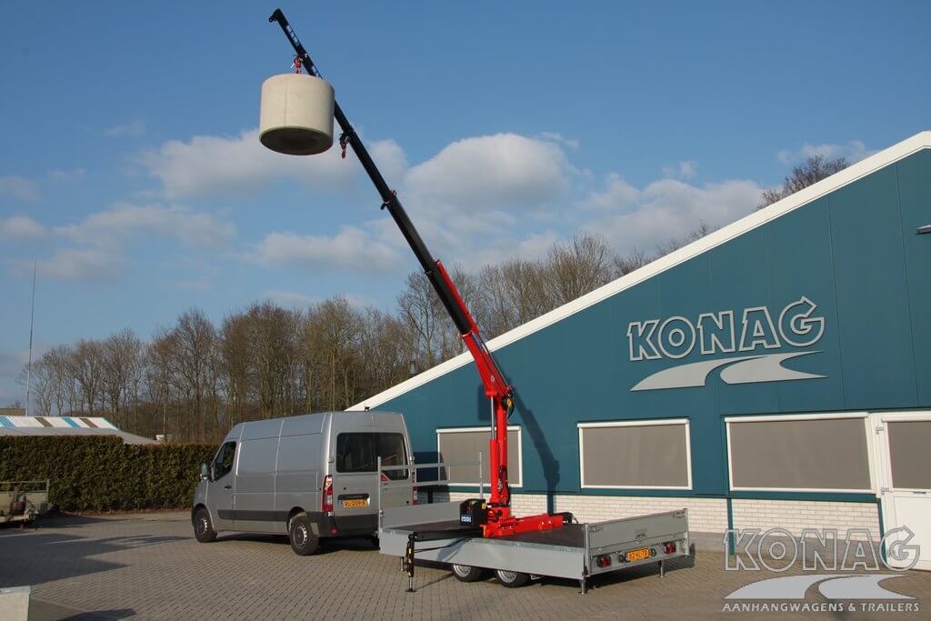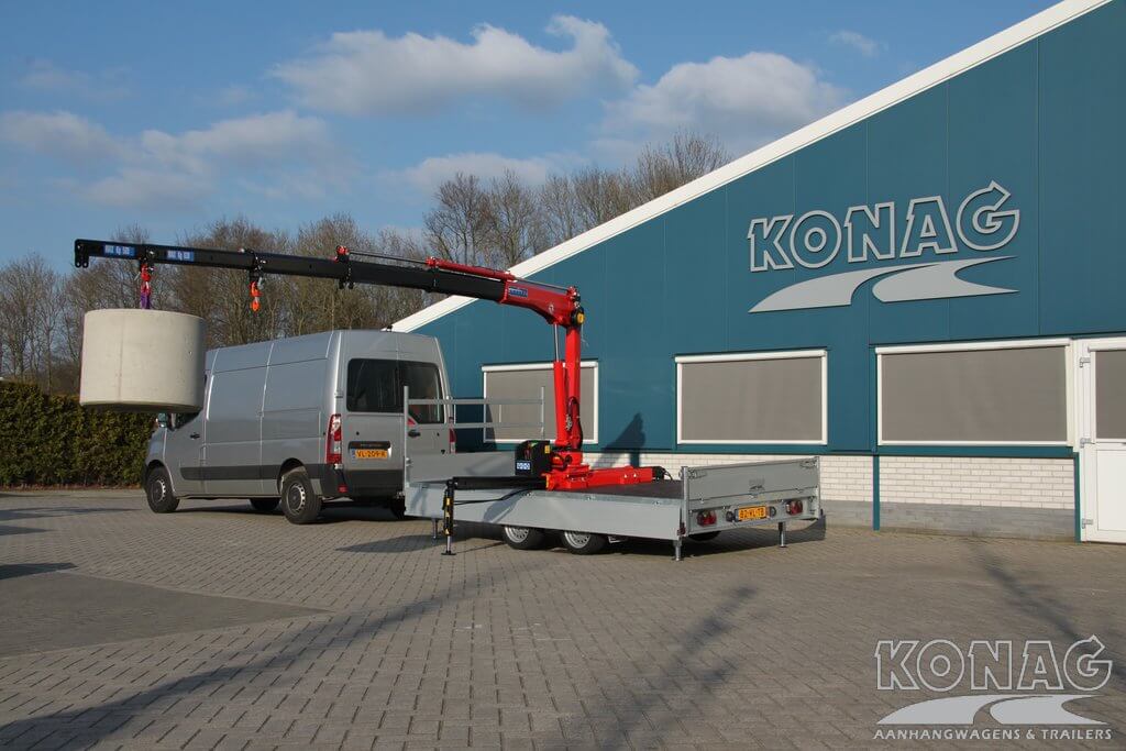 Konag aanhangwagen voorzien van laadkraan is uitgevoerd met: