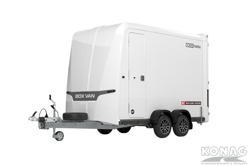Een ruime Brian James Boxvan gesloten aanhangwagen in de kleur wit. Deze aanhanger is voor zowel privé, als professioneel veelzijdig te gebruiken. Door de ruime binnen afmeting van 450 x 195 x200 cm (LxBxH) en het bruto laadvermogen van 3000 kg is deze Boxvan van Brian James een ideaal voor verschillende transporttaken. Aan de voorzijde bevinden zich handige loopdeuren, en de achterzijde bevat een praktische deur-/klepcombinatie. Door de deuren aan de achterzijde te gebruiken als oprijklep kan je eenvoudig voertuigen of machines vervoeren. DE lage laadvloer maakt het transporteren van voertuigen nog eenvoudiger.