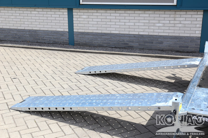 De Brian James A4 450×210 cm autotransporter is een betrouwbare en duurzame trailer met 3500 kg bruto draagvermogen. Dankzij het robuuste volbad verzinkte chassis is de constructie optimaal beschermd tegen corrosie, wat zorgt voor een lange levensduur. Deze uitvoering is compleet uitgerust met onder meer lichtmetalen velgen, uitrolbare antislip rijplaten, een gereedschapskist in de vloer en moderne LED-verlichting. De Brian James A4 autotransporter is al jarenlang een favoriet onder professionals én hobbyisten die veilig en eenvoudig auto’s, waaronder lage sportwagens, willen vervoeren