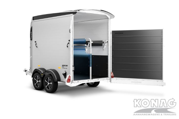 Wat deze uitvoering onderscheidt, is de draai- en zwenkbare achterklep. Hierdoor kiest u zelf hoe u de trailer gebruikt, afhankelijk van de situatie. In combinatie met het schuifraam aan de zijkant zorgt dit voor extra ventilatie en meer controle over het klimaat in de trailer. Daarnaast is de Areion Pro is voorzien van het EquiDrive® chassis met wielschokdempers. Samen met het thermisch verzinkte chassis zorgt dit voor een stabiele wegligging en een veilige rijervaring. De trailer blijft rustig achter de auto, ook bij langere ritten.