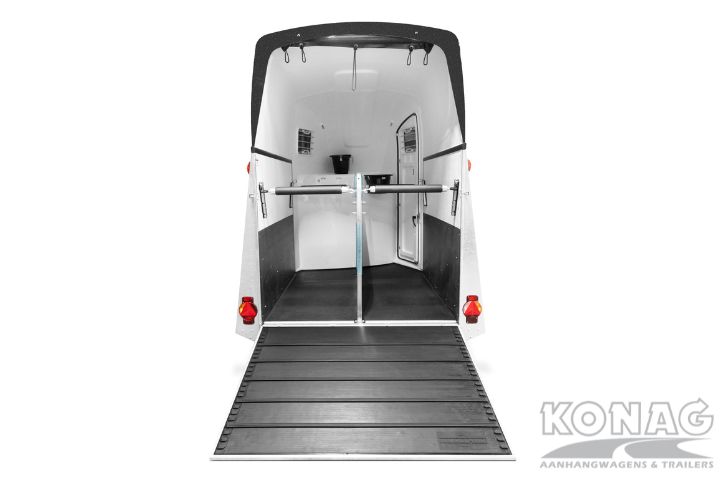 De trailer is ingericht met oog voor veiligheid en gebruiksgemak. De verstelbare borst- en achterstangen zijn voorzien van EquiGuard® paniekontgrendeling. De EquiLock® scheidingswand is vergrendelbaar en draagt bij aan een stabiele positie van het paard tijdens het vervoer.
