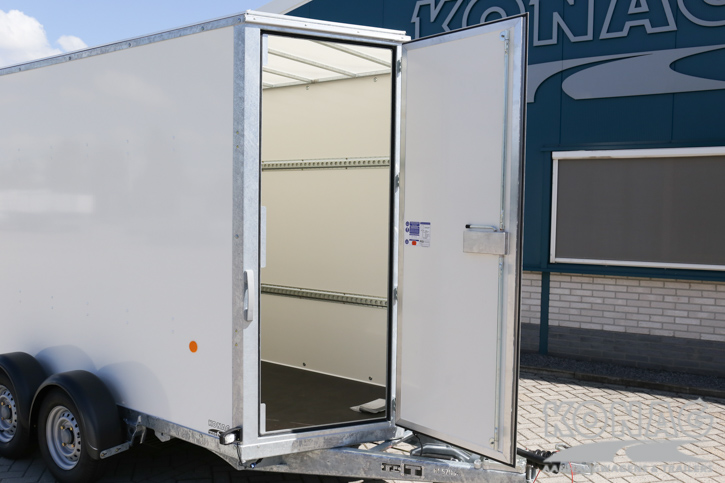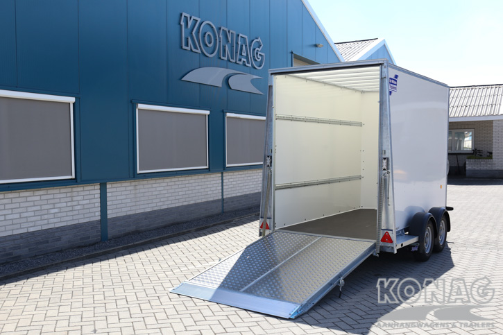 Ifor Williams Boxvan BV105 G gesloten aanhangwagen met deur-/ klep combinatie, is een gesloten aanhangwagen met een inwendige afmeting van 303x147x214 cm. De aanhangwagen heeft een bruto draagvermogen van 2700 kg en is perfect voor het vervoer van een volume, waarbij u kunt hierbij denken aan het vervoer van bloemen, pakketten of verhuis goederen en kan ook goed ingezet worden als gesloten aanhangwagen voor touroperators. Via de achterzijde kan u zich toegang verschaffen door de inzet van deuren maar u kunt er ook voor kiezen om de klepfunctie te gebruiken.