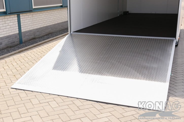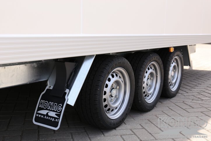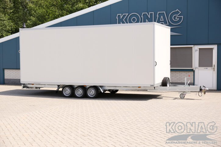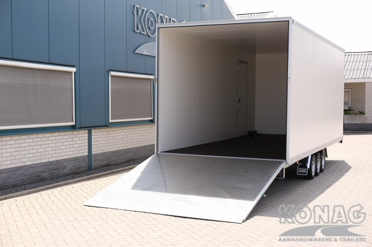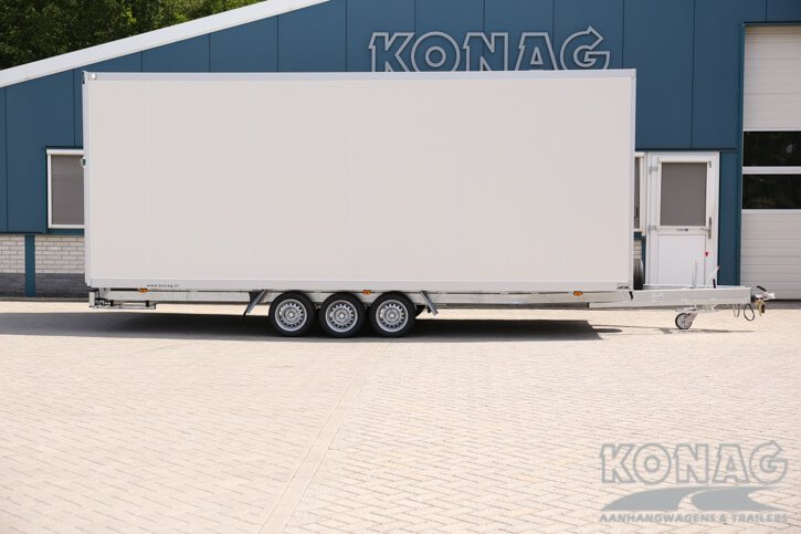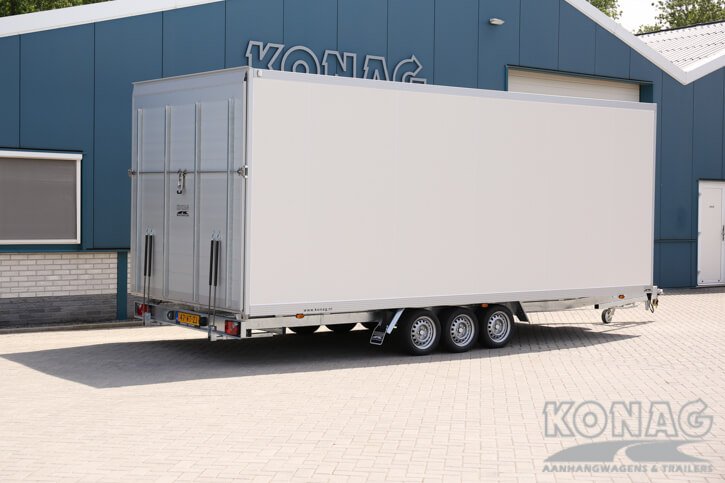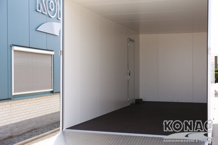 Ontdek de ultieme Konag gesloten aanhangwagen voor autotransport! Met inwendige afmetingen van 605x245x230 cm biedt deze tridemas gesloten aanhangwagen voldoende ruimte voor het vervoeren van diverse auto’s. Het voordeel van een gesloten aanhangwagen dat u uw auto droog kunt vervoeren, zonder na te denken over de weersverwachtingen. De 50 mm sandwich panelen opbouw, neergaande achterklep en rvs opbouw zorgen voor een degelijke en solide aanhangwagen.