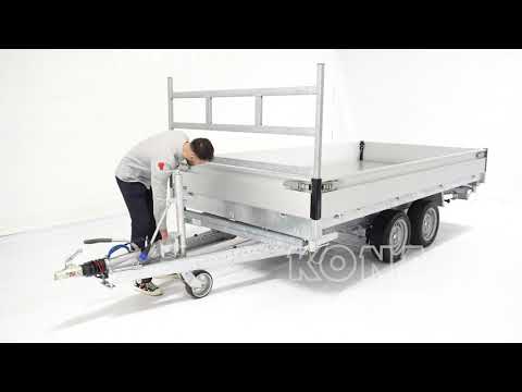 Ontdek de krachtige Konag Proline driezijdige kipper tandemas 351×185 – jouw partner voor zwaar transportwerk! De Proline kipper is uitgerust met 195 50 13″ banden en extra kokers onder de laadvloer waardoor de aanhangwagen zeer robuust is en een laag zwaartepunt heeft. De kipper is 3-zijdig kantelbaar waardoor u een grote flexibiliteit heeft tijdens het lossen. Fysieke inspanning wordt verlaagd doordat de kipper voorzien is van elektrische bediening, voor het behoudt van uw accu is het belangrijk dat u geregeld uw accu oplaad.