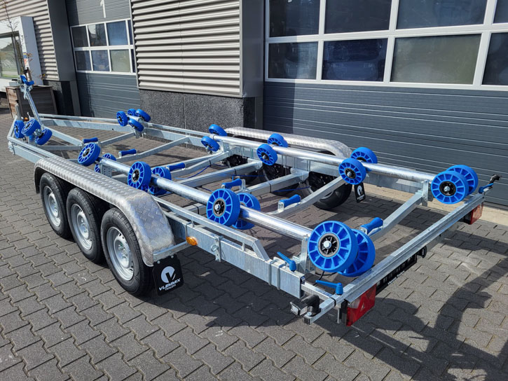 De Vlemmix 840 cm tridemas flex-roll boottrailer combineert extra draagkracht met een flexibele rompondersteuning. De drie assen van 1500 kg zorgen voor een gelijkmatige gewichtsverdeling waardoor u comfortabel en stabiel rijdt, ook wanneer u een zwaardere boot vervoert. Dankzij het flex-roll systeem worden krassen voorkomen doordat de wielen soepel met de romp meebewegen.